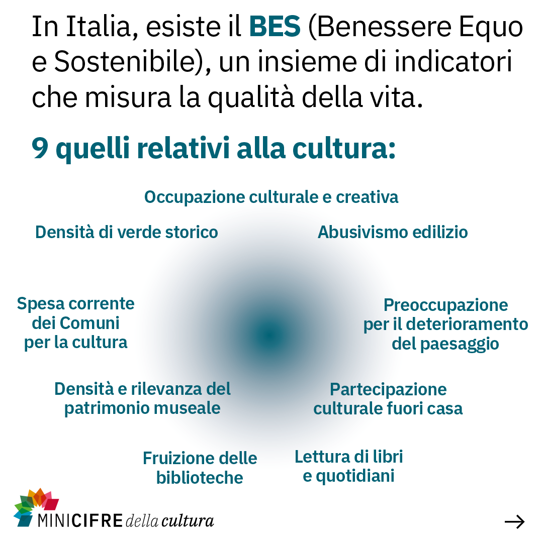 Il rilievo della cultura nell’ambito del BES è testimoniato dalla presenza di un dominio dedicato – Paesaggio e patrimonio culturale – e di altri indicatori distribuiti nei domini Innovazione, ricerca e creatività e Istruzione e formazione.