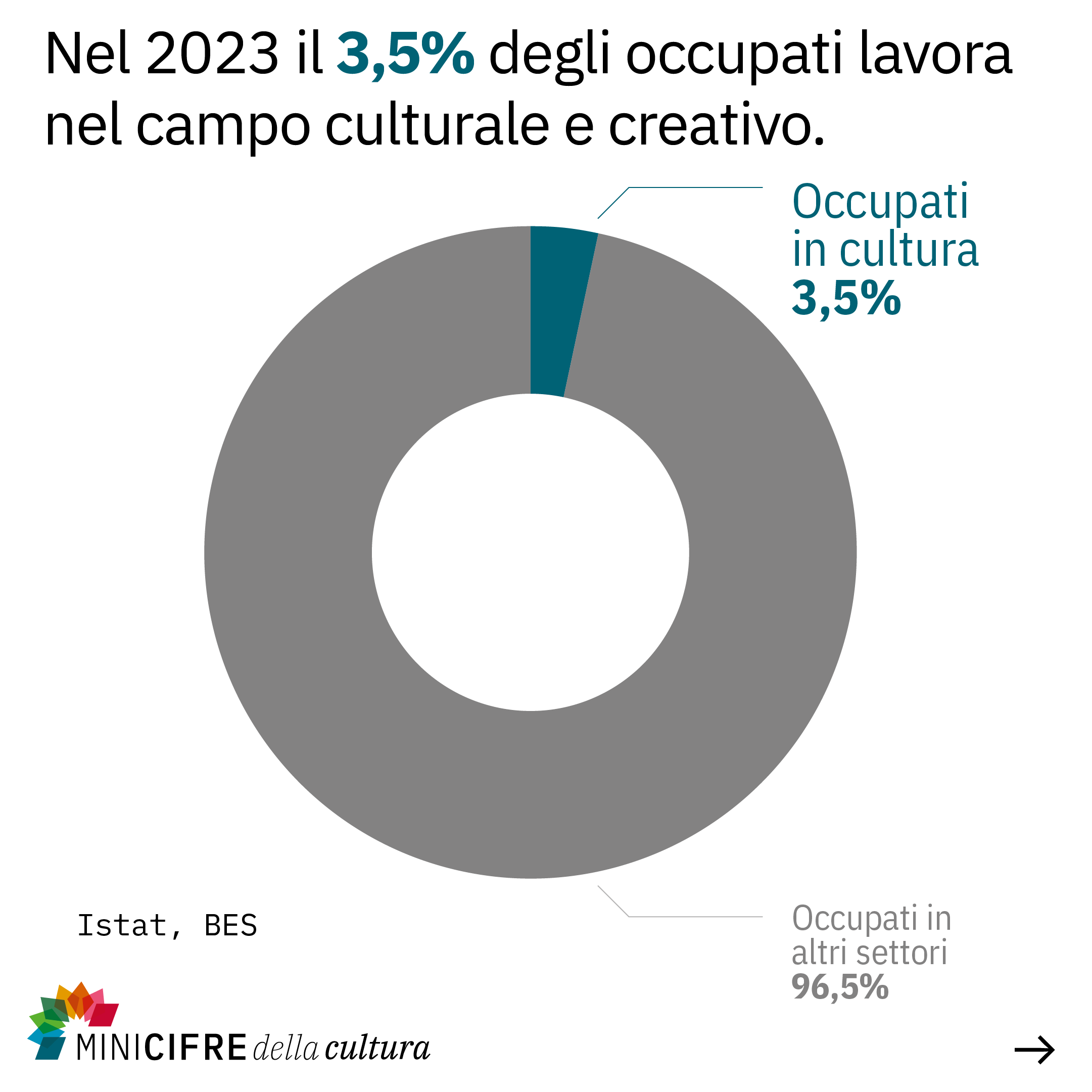 Infine, si mantiene pressoché stabile l’occupazione culturale e creativa, passata dal 3,4% al 3,5% del totale degli occupati tra 2020 e 2023, lievemente al di sotto del valore pre-pandemico (3,6% nel 2019).