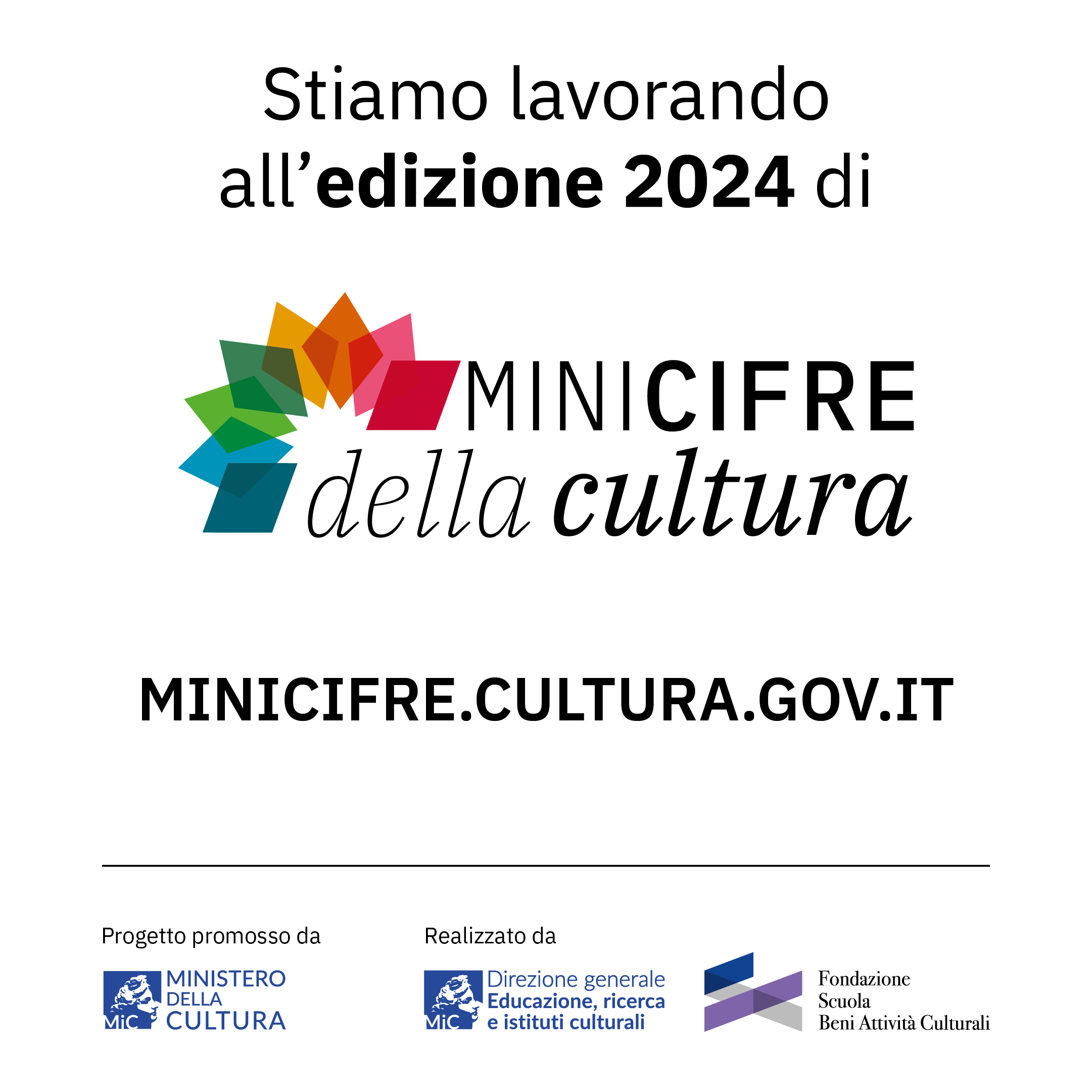 Minicifre della cultura è un progetto promosso dal Ministero della Cultura, realizzato dalla Direzione generale Educazione, ricerca e istituti culturali del MIC con la Fondazione Scuola dei beni e delle attività culturali. La ricerca raccoglie e condivide, in una pubblicazione cartacea e in un sito web, i principali dati statistici sulla cultura in Italia: uno strumento di lettura della domanda, dell’offerta e delle politiche culturali, utile per la comunità scientifica, i decisori politici, i professionisti e gli operatori di settore, la cittadinanza. Il progetto riprende l’omonima pubblicazione curata tra il 2009 e il 2014 dall’Ufficio Studi del Segretariato Generale del Ministero e la arricchisce di contenuti grazie al contributo delle Direzioni generali e degli Istituti del Ministero della Cultura ma anche di esperti, enti pubblici e privati di settore, enti di ricerca e testate giornalistiche.